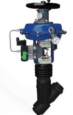 ZMQSY气动Y型疏水阀适用于火电站系统中(火电站系统中主蒸汽系统疏水),作为接通或截断介质使用。气动Y型疏水阀上部由阀盖和填料箱组成,便于拆装以及在原地维修。倾斜阀杆的构造和的流道形状设计使介质近于直线的方式,阀门具有的Cv值,产生比其它形式阀门低的压降。阀门本体上以工艺堆焊硬质合金密封面(密封面表面经过整体硬化处理),结构紧凑。锥形密封面设计使较小的轴向力可密封,能提供好的密封。采用阀体中腔导向的阀瓣具有上下两个导引环,阀瓣的顶部和底部同时导向,构成在阀体中腔导向的活塞式阀瓣,可以消除因受力不当产生的卡死,表面擦伤,阀杆弯曲,阀瓣振颤等现象。阀瓣底部的导引环将的流体以接近直线的方式通过,消除侧面冲击引起的反应。这些特点使该阀门适用于电站蒸汽快速“排放”和“疏水”系统。阀瓣密封面堆焊硬质合金,该合金具有的机械特性,耐磨损,耐冲蚀。阀杆填料采用填料,能起到的防漏效果,并且拆装方便。填料箱与阀体处的密封采用夹316高目柔性石墨垫,以预定的扭矩进行装配。采用气动装置作为执行机构,对阀门的控制精确,安全,有效.填料箱采用特殊结构设计,保证足够的强度和良好的热学特性。